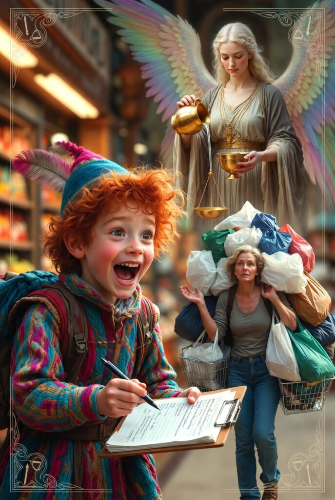 Page of Wands? Yes, there is the yapping voice that wants you to sign this petition as you come out of the grocery store, arms loaded, hardly understanding what the petition is for as you’re besieged. I really hope, if you get maneuvered into this scenario, you’ll remember the counsel of Temperance and simply say, “No, thank you.”