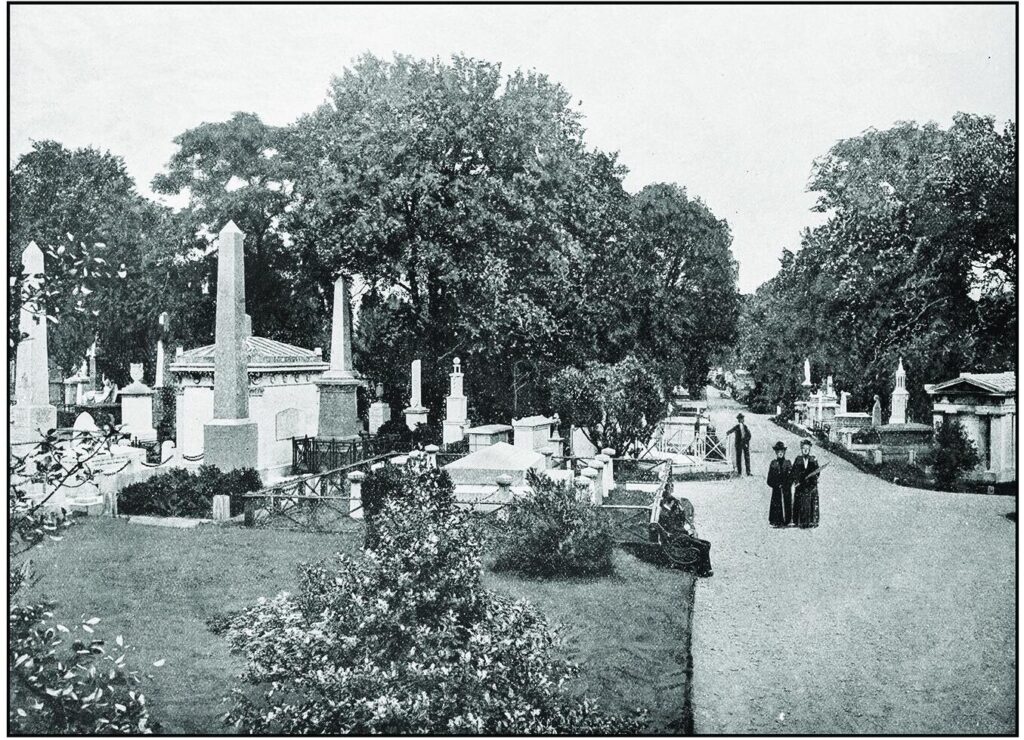A cemetery of the kind with which we’re most familiar is a secular, carefully landscaped property, meant for visiting and the recreational mourning the Victorians enjoyed. You might visit a cemetery on a holiday or anniversary once in a while, but those Victorians showed up like clockwork not simply to commemorate their dear departed, but to stroll or ride through the park like setting. They were even encouraged to picnic in some cemeteries.