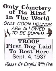 Up in north Alabama, near Tuscumbia in Colbert County, a former hunting camp has been the final resting place for faithful coon dogs for almost a hundred years. When hunter Key Underwood said a last goodbye to his dog, Troop, he knew that dog could have no happier spot than the woods where he could now run a cold trail until it turned hot and not tire, chase raccoons up every tree, and flop down in a patch of sunlight for a morning nap after a long night of hunting.